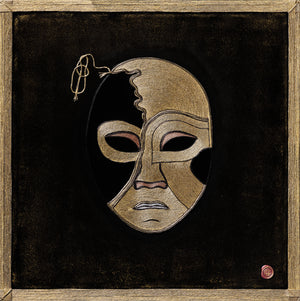 "Senza Volto" represents the mask we wear to conform to social expectations, highlighting the contrast between the visible part, represented by the golden threads, and the hidden and mysterious side of the human being, symbolized by the glossy resin. The bowline knot, which can tighten or loosen, embodies the dilemma between remaining trapped in falseness or breaking free to reveal one's true nature. The contrasting colors and textures amplify the tension between appearance and truth, inviting reflection on the complexity and mystery within each of us.